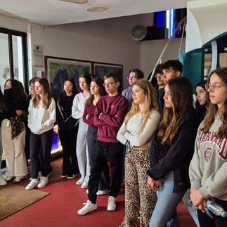 A manhã começou com uma visita ao Observatório Vulcanológico e Geotérmico dos Açores, onde os alunos puderam aprender sobre a atividade vulcânica e os processos geológicos que moldam a ilha. No início da visita, foi oferecida ao Observatório uma amostra de stockwork em xisto e um sulfureto maciço, provenientes da região do Alentejo, gentilmente cedidos pela SOMINCOR, S.A. – Mina de Neves-Corvo. Esta doação tornou a coleção de amostras do Observatório mais rica e diversificada, passando a incluir exemplares representativos da mineração portuguesa e dos processos geológicos associados à formação de jazigos minerais.